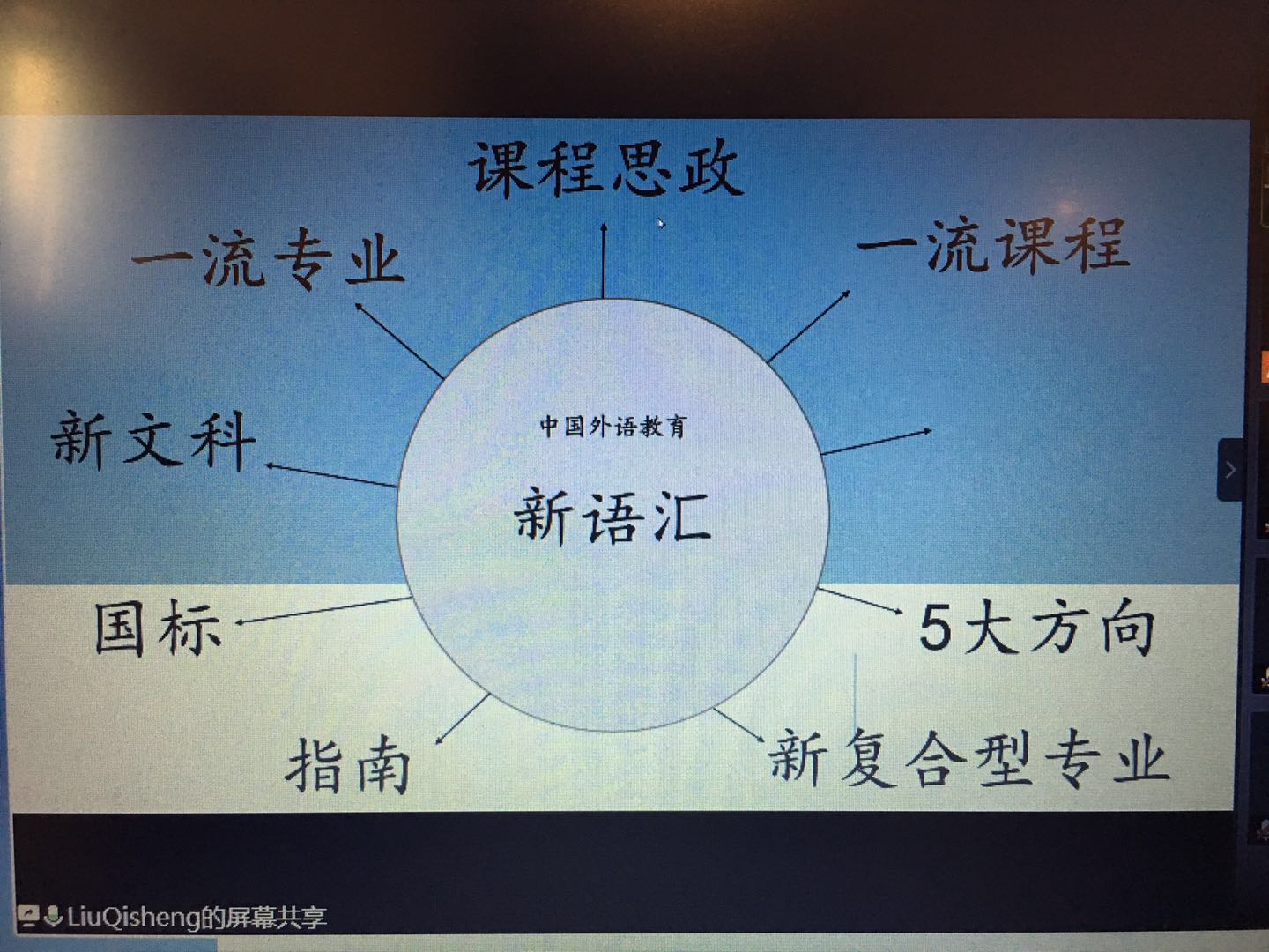 教育部外语教学指导委员会德语分委员会副主任委员刘齐生教授通过两届教指委的工作经验,为大家分析中国外语教育正在发生的深刻变化。刘老师从外语界出现的新词汇出发,解读“国标”和“指南”,分析何为“新文科”,国家对于一流专业和一流课程又有什么样的要求。刘老师还特别强调了外语类课程思政建设,突出教育的终极目标就是要“立德树人”,而中国高校的外语专业就是要培养富有爱国情怀善于思辨的复合型外语人才。