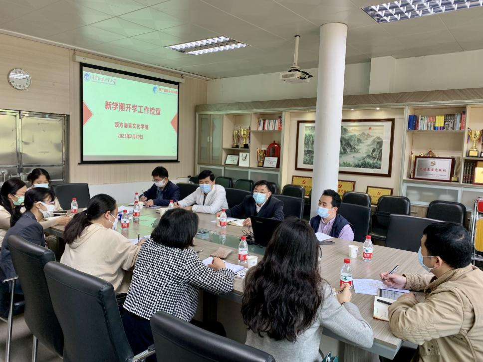 李云明副书记肯定了西语学院开学的各项工作,对于今后的工作,他提出:一要对非通用语种的发展做出整体规划。小语种的建设不仅要服务国家战略,还要对学生发展负责,与社会需求接轨。学院应集思广益,多调研、多论证,深入分析非通用语毕业生的就业形势,共同推进战略性非通用语种建设;二要关注新学期师生工作重点问题。西语学院要继续保持在教学、科研、对外交流、社会服务等方面的良好传统,并重点关注意识形态、师德师风、日常安全问题,加强反诈宣传等工作,打造平安校园的和谐环境。三是要做好疫情防控常态化工作。学院在疫情防控方面不能掉以轻心,应及时关注学校政策变化,做出动态调整,不加码,不放松,全面深入地理解疫情防控政策,维护师生身心健康。四是要主动承担外语学科冲一流工作。西语学院作为外语学科建设的重点院系,要在学校外语学科冲一流行动方案的指导下主动承担起冲一流工作,细化实施方案,对相关工作做出合理规划,稳步向前推进,同心聚力,共同实现外语学科冲一流的目标。