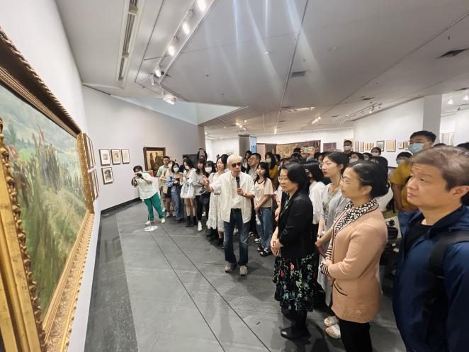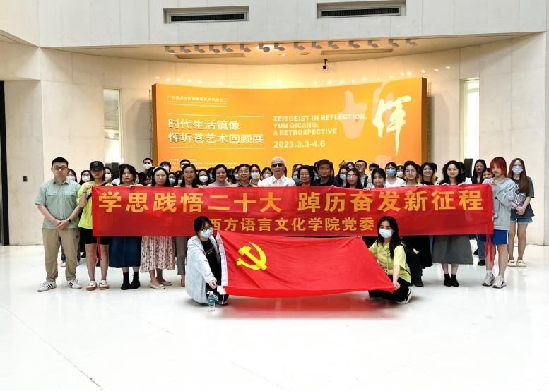 为深入学习宣传贯彻党的二十大精神,坚定师生理想信念,3月24日下午,西语学院党委组织100名师生党员前往广州美术学院开展“学思践悟二十大·踔厉奋发新征程”主题党日活动,参观历史主题画展——“时代生活镜像——恽圻苍艺术回顾展”。