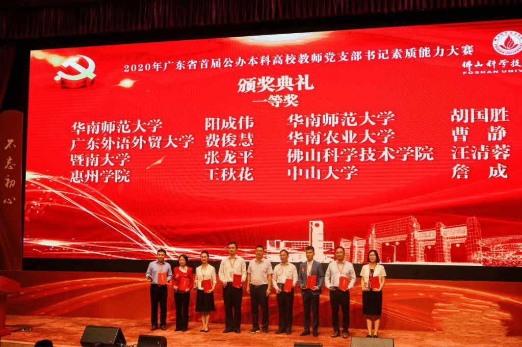 9月26日,广东省首届公办本科高校教师党支部书记素质能力大赛决赛在佛山科技学院举行。我院教师第二党支部书记费俊慧老师与来自全省兄弟高校的选手同台竞技,一展风采。比赛中,费俊慧老师以清晰的思路脉络、精准的政策把握、到位的语言表达,充分展示了一名教师党支部书记所具备的过硬的基本功和优秀的素质能力,在全部48名选手中突出重围,以总分前三的佳绩勇夺一等奖。