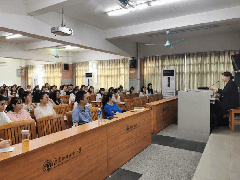 在会见结束后,霍玉珍大使受邀为我校中东欧语种专业师生带来了精彩的讲座。讲座在师生们的热情掌声中拉开帷幕。霍大使首先从当前国际形势的背景切入,介绍了中国同中东欧国家“17+1合作”的现状与发展。随后霍大使结合自己早年海外留学和丰富的驻外工作经历,依次描述了17个中东欧国家各自的民族特色和文化特征。在此基础上,霍大使从八个角度总结归纳了中东欧国家间的共性与特点。大使用风趣幽默的叙述,深入浅出、娓娓道来,既具有较强的知识性,又具有现实的指导意义。