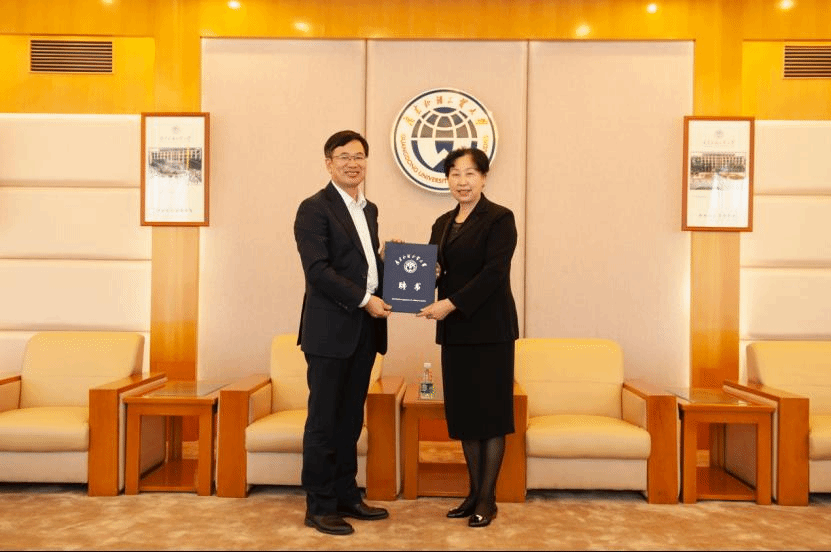 何传添副校长为霍玉珍大使颁发广东外语外贸大学客座教授聘书