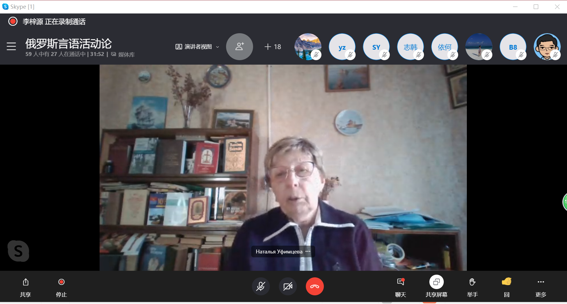 本网讯 2021年4月12日-19日,广东省海外名师项目《俄罗斯当代心理语言学前沿课题》线上系列讲座在我院顺利举办,反响热烈。俄罗斯科学院语言学研究所高级研究员娜塔丽娅·乌菲姆彩娃(Наталья Владимировна Уфимцева)教授受邀为俄语系师生做了五场生动有趣的讲座,带领大家深入了解俄罗斯当代心理语言学研究的前沿课题。