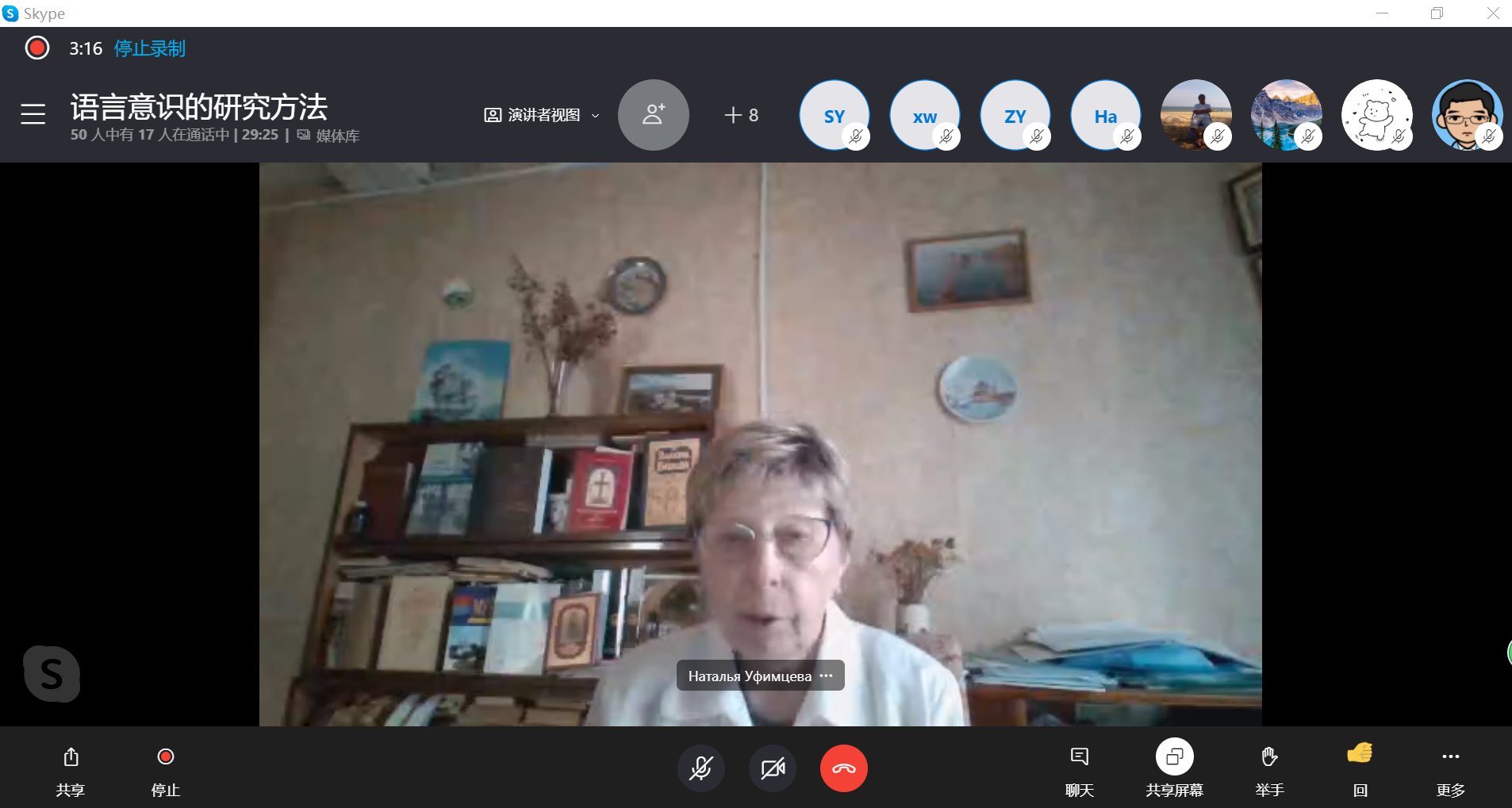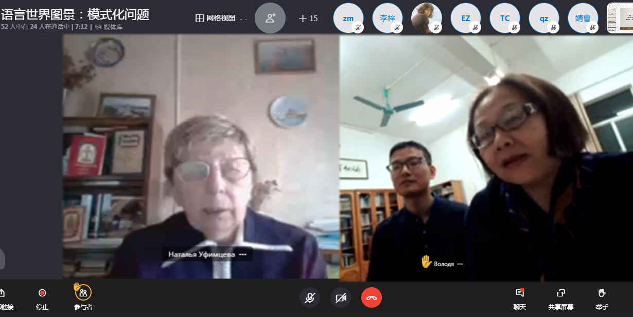 第二场讲座,乌菲姆彩娃教授通过层层递进讲述了俄罗斯言语活动论的理论基础。在理解言语前先阐述了什么是语言,它是人类所有活动的管控机制,而内部言语则是语言与智力,口头与书面语及各民族间的媒介,后介绍了阿·尼·列昂季耶夫的活动论框架再到阿·阿·列昂季耶夫的言语活动论及其应用前景。师生们表示从中真切地感受到了理论运用于实践、实践不断丰富理论的要义。