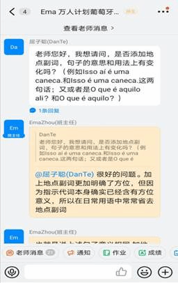 课上,教师与三地同学间交流频繁,互动热烈。课后,同学们也通过班级微信群等方式对语言学习的方法和技巧交流心得体会。同学们对此次线上课程的满意度较高,感言不仅学习语言基础,还拓宽国际视野,增强跨文化交际的能力,而且结交友谊。