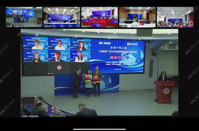 西语组评委老师向主会场致意