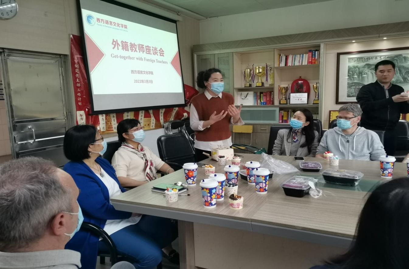 3月3日下午14:00,西方语言文化学院在4教207会议室举行了在校外籍教师座谈会。西语学院院长杨可教授,敖湘晖书记,副院长茅银辉教授,部分系主任和专业负责人与所有在校的外籍教师参加了座谈会。