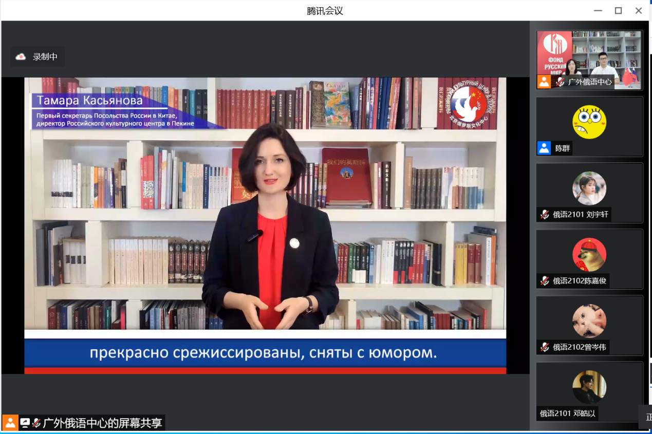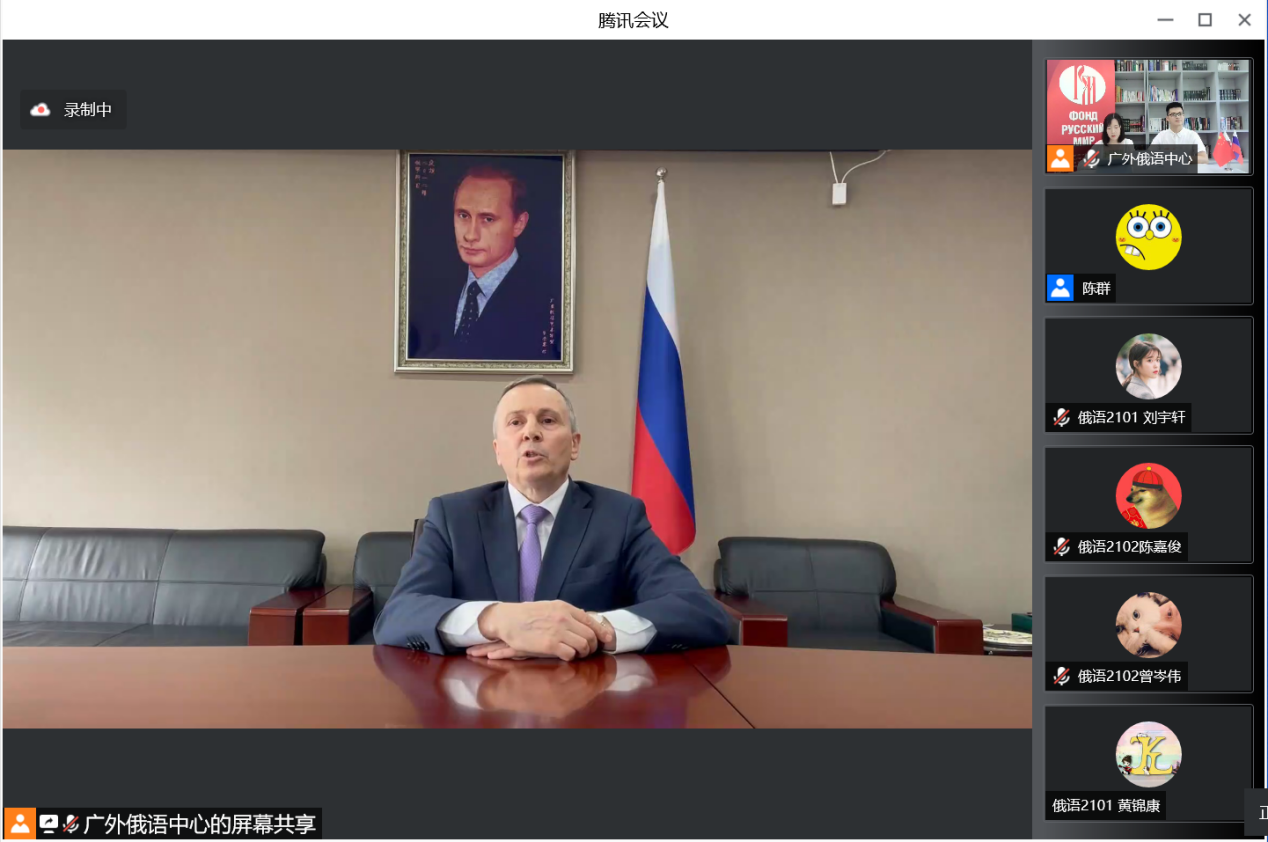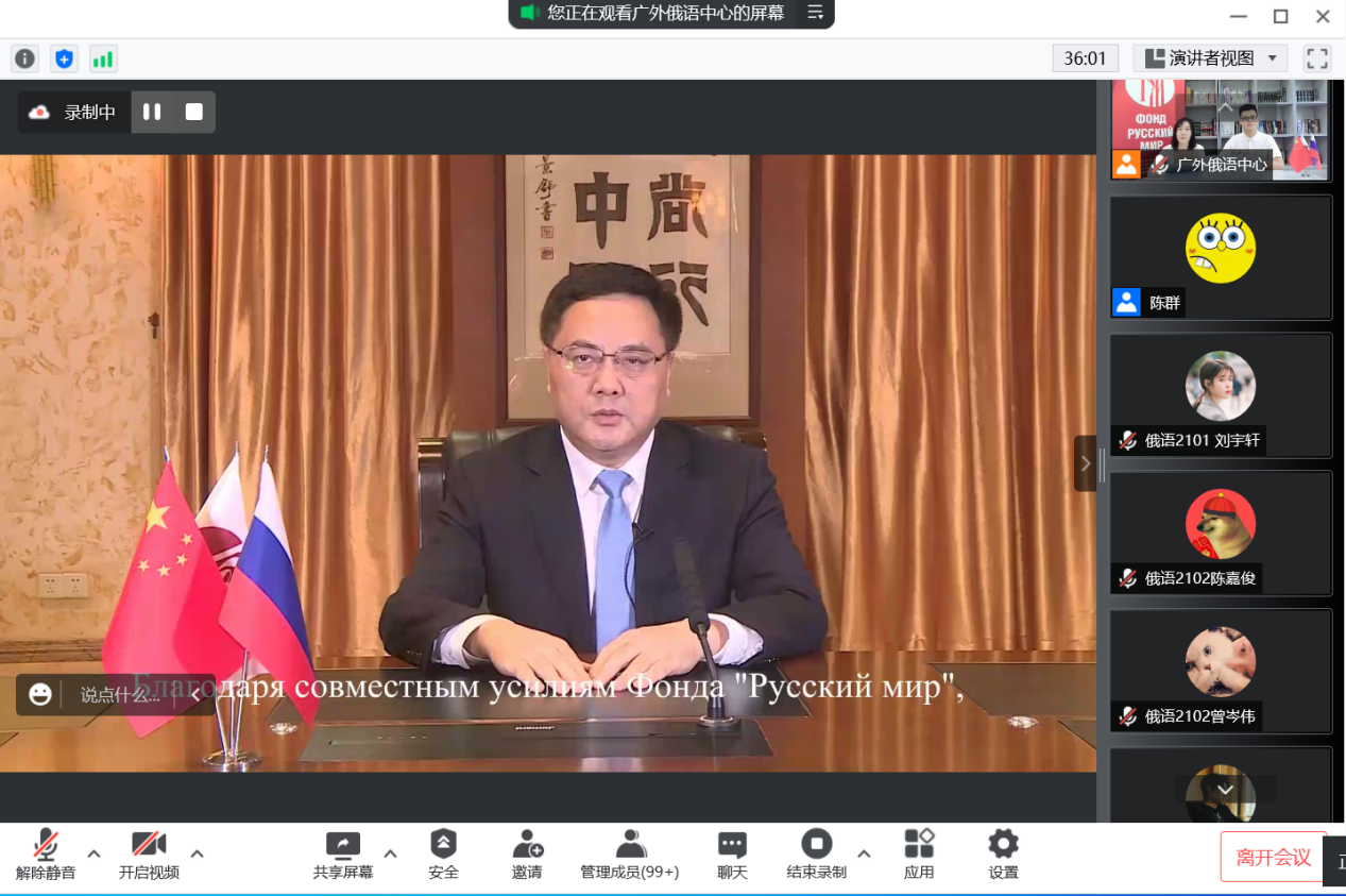 本网讯 2022年5月28日,由广东外语外贸大学俄语中心和俄罗斯联邦驻广州总领事馆共同主办,广东外语外贸大学西方语言文化学院和北京俄罗斯文化中心协办的第11届“俄语日”暨“中俄体育交流年续写两国友好新篇章”短视频大赛颁奖仪式线上成功举办。广东外语外贸大学党委书记、校长石佑启,俄罗斯联邦驻广州总领事馆总领事亚历山大·切尔诺乌索夫,北京俄罗斯文化中心主任塔玛拉·卡西亚诺娃分别为本届“俄语日”致辞。