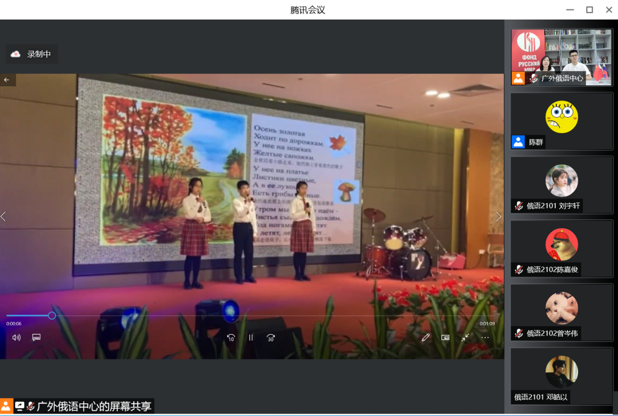 来自俄罗斯联邦驻广州总领事馆代表、北京俄罗斯文化中心代表、广东外语外贸大学、华南师范大学、厦门大学、海南大学、南昌大学、深圳北理莫斯科大学、广西科技大学、广东外语外贸大学南国商学院、广州外国语学校、佛山莘村中学等学校的150多名师生代表和其他俄语爱好者观看了线上直播。