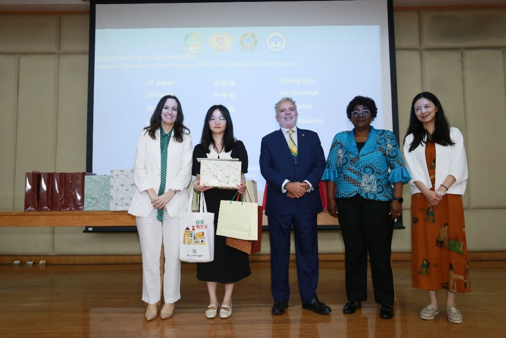 本次活动还公布了由葡萄牙、巴西、安哥拉驻广州总领事馆联合我校西方语言文化学院举办的“葡萄牙语征文比赛”的获奖名单,我系伍海蓝同学在此次比赛中获得季军。三位总领事为到场的获奖选手颁发了奖品及证书。
