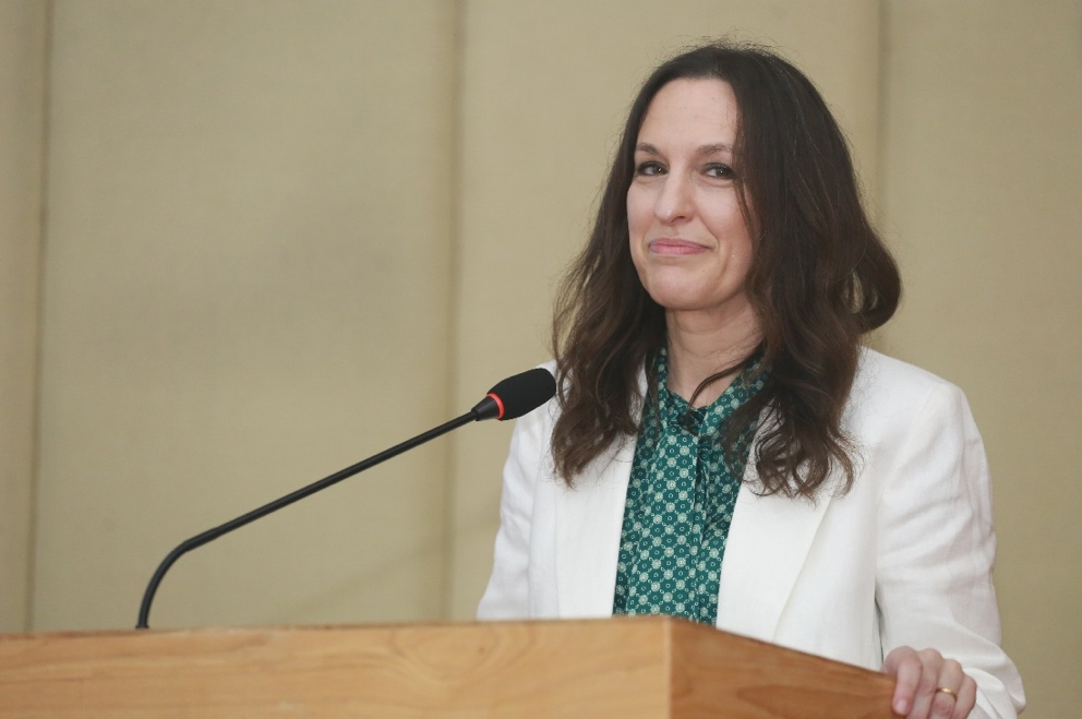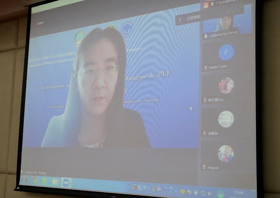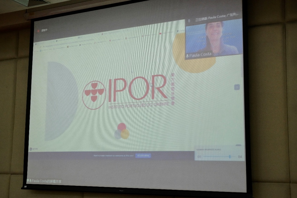 来自东方葡萄牙学会的保拉·科斯塔教授进行了以“东方葡萄牙学会对葡萄牙语的宣传与推广”为题的讲话。