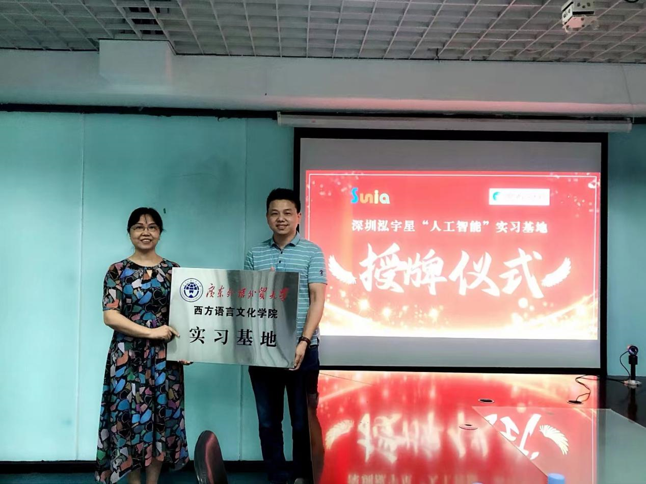 6月16日下午,敖湘晖一行到达深圳市泓宇星科技有限公司,举行了西语学院“多语种人工智能”实习基地的挂牌仪式,与泓宇星联合创始人成利君一行就已正在进行的实习项目的实施情况做了阶段性回顾和中长期合作展望,达成了了扩大合作范围、持续深度合作的共识。