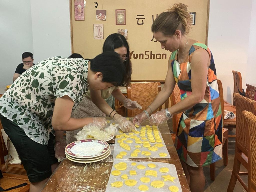 浓情中秋月,献礼教师节。2022年9月8日下午,西语学院组织教师们在图书馆负一层云山小站开展了庆祝教师节、中秋节团建活动。50余名西语学院教师,包括7名外教,参与了此次活动。大家一起品尝咖啡,亲自动手制作曲奇,在欢声笑语中庆祝即将到来的教师节与中秋节。