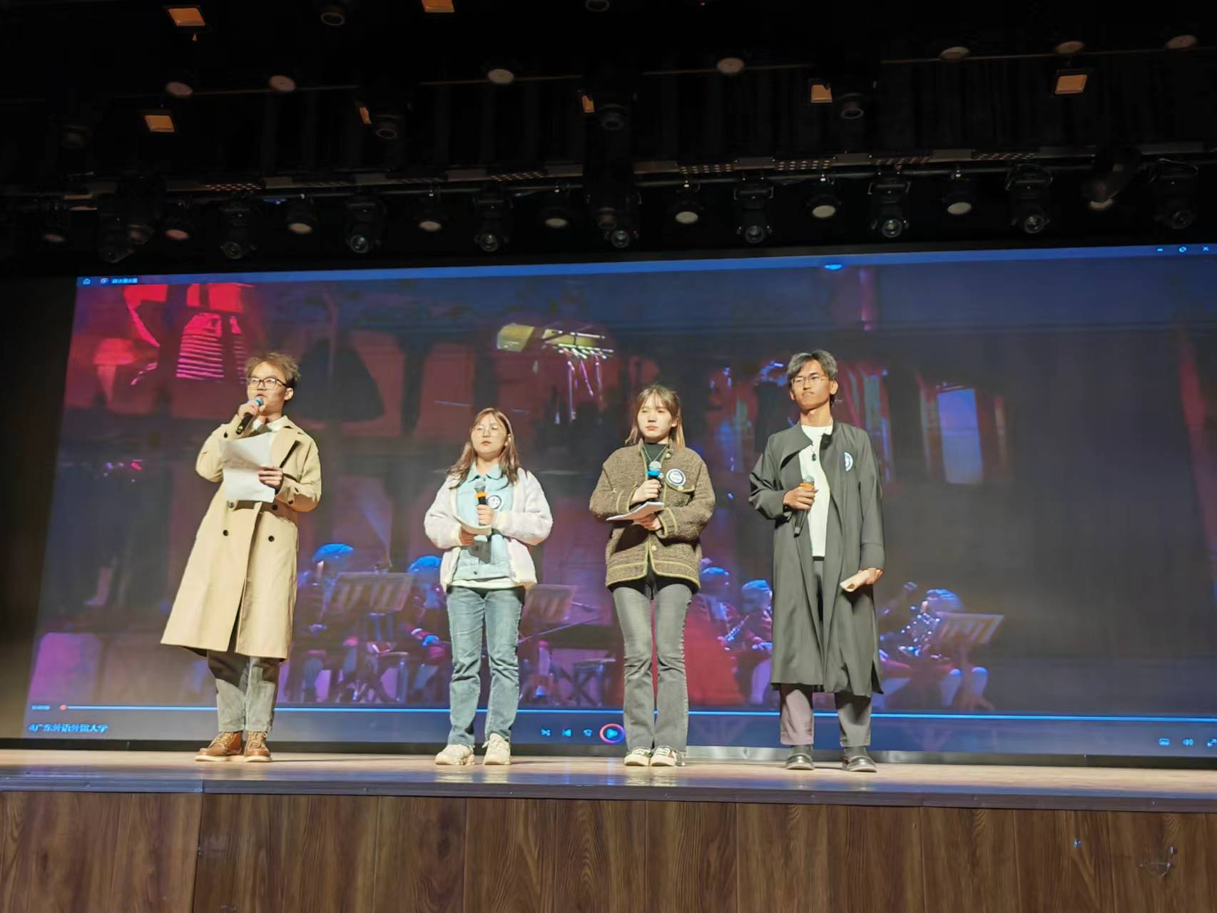 本网讯 全国高校法语配音大赛于4月2日在北京外国语大学的千人礼堂落下帷幕。本次大赛吸引全国高校法语系学生参与角逐,最终选出11所高校代表队进行线下决赛,我校法语学子谭欢、郑晓纯、陈昊文、尹世源组成的Rêvasser(梦想)小队荣获二等奖。