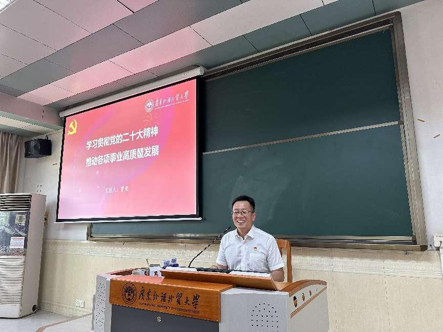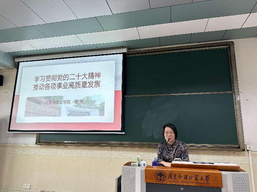 此次政治学习邀请了学校马克思主义学院曾荣教授开展了主题为“学习贯彻党的二十大精神,推动各项事业高质量发展”的讲座。在讲座中,他梳理了二十大报告的主要内容,摘取了习近平总书记在二十大报告中的金句,对中国共产党成立的历程、伟大建党精神、高质量发展、中国式现代化等二十大关键词进行了摘要式解读。