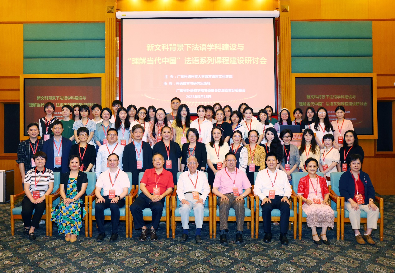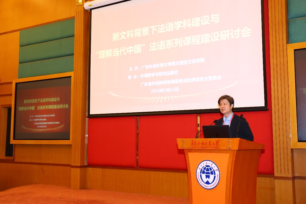 为进一步落实立德树人的根本任务,积极响应《新文科建设宣言》,守正创新,推动“三进”工作迈上新台阶,广东外语外贸大学西方语言文化学院于5月15日在广外白云山校区国际会议厅举办“新文科背景下法语学科建设与‘理解当代中国’法语系列课程建设研讨会”。本次研讨会由广东外语外贸大学西方语言文化学院主办,外语教学与研究出版社及广东省外语教学指导委员会欧洲语言分委会协办,该研讨会分为“新文科背景下法语学科建设”和“‘理解当代中国’法语系列课程建设”两个专题。