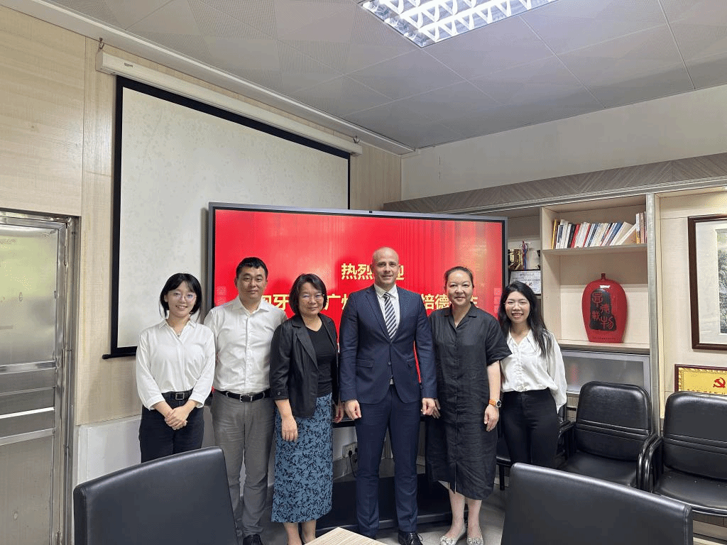 2023年10月12日上午,匈牙利驻广州总领事华培德(Péter Várfi)来访我院,西语学院党委书记王秀民、院长杨晓敏、副院长陈星、学院办公室外事秘书左尚君、匈牙利语教师王梦圆会见来宾。双方就匈牙利语专业建设、人才培养、外教聘用、国际合作等事宜进行会谈。