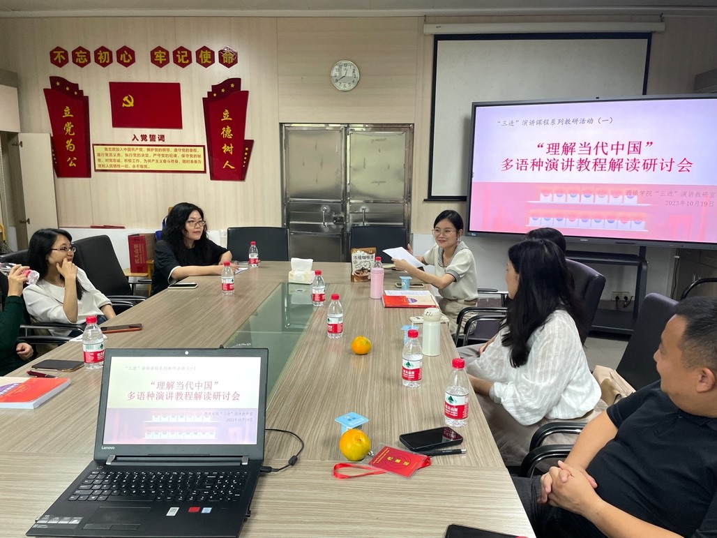 作为自西语学院“三进”演讲系列课程教研室创立以来的首次研讨会,“理解当代中国”多语种演讲教程解读研讨会有效推进了我院“三进”课程落地生根,促进了跨语种教学资源交流融合。接下来,演讲系列课程教研室将会继续开展课程观摩、教学研讨、集体备课、教案设计大赛等教研活动,在理论与实际的深挖互证中,努力推动我院外语学科继续以高质量发展为旗,向前迈步。