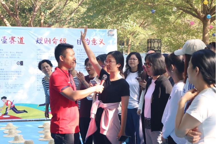 24日13:30,老师们准时集合,坐上大巴车,来到了白云山脚下的帽林营地。团建活动在轻松愉快的热身活动中拉开序幕。在趣味数学互动环节中,大家争先恐后,积极抢答,气氛热烈。同事们相互摸头鼓励,按摩肩膀,舒活筋骨。笑容在绽放,温度在上升,心与心的距离在慢慢靠近。