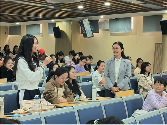 问答环节,同学们纷纷举手提问,王珍详细回答了多名学生的问题,鼓励同学们养成终身学习的开放心态,勇于挑战新领域、新赛道。