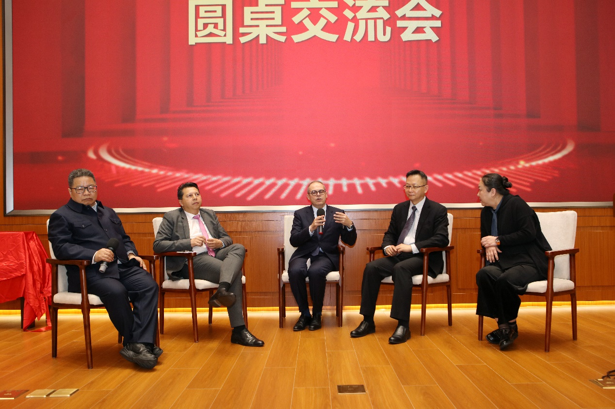随后,福希玮先生、理查德-索帕诺先生、邱伟年教授以及项晓光先生进行了一场别开生面的圆桌会谈。会谈中,邱伟年教授与理查德-索帕诺先生就两校合作项目进行了交流,并强调了学习商科与培养复合型人才的重要性。
