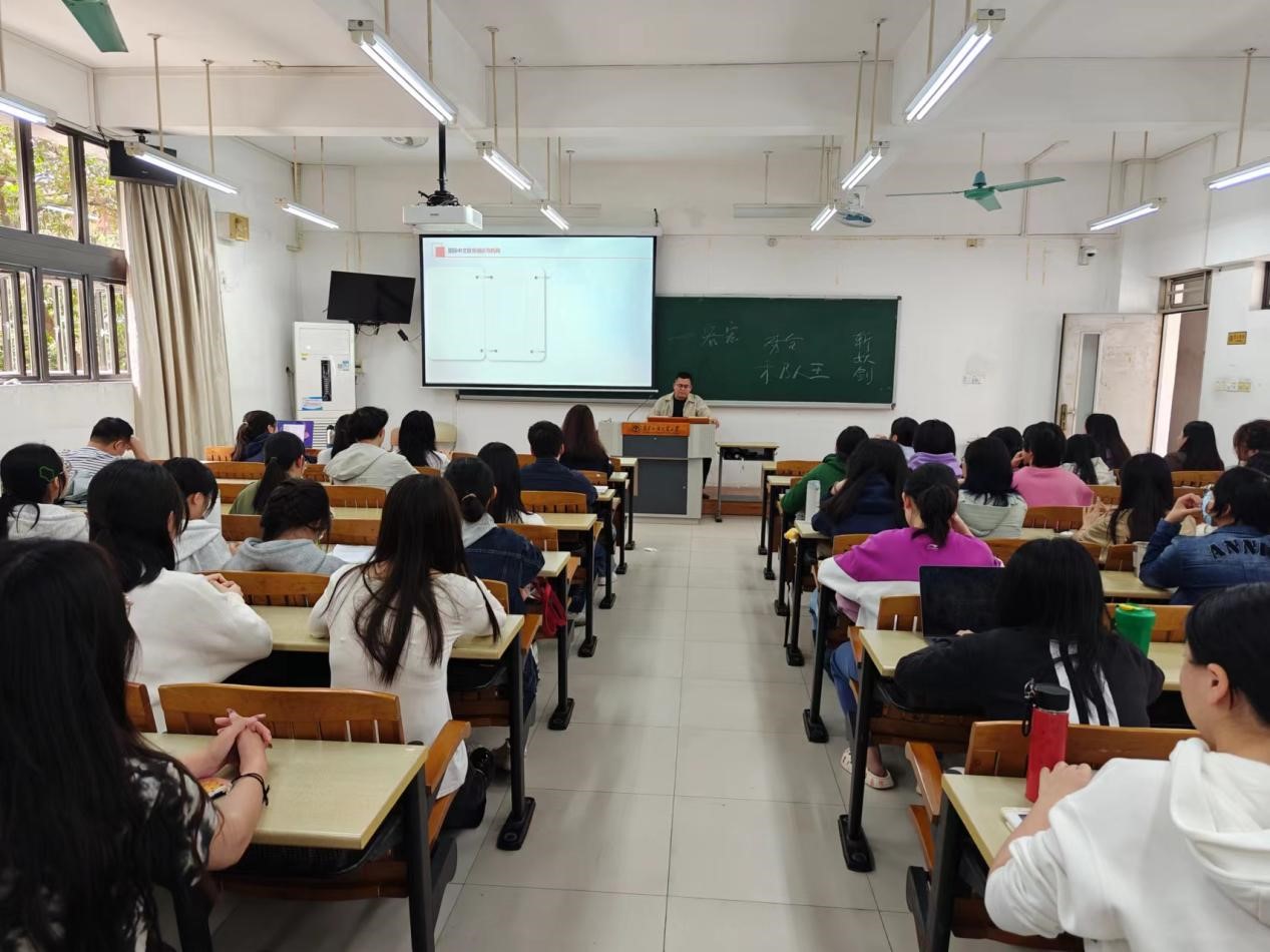本网讯 为提高学生生涯规划意识,3月21日下午,我院在六教B213开展题为“争做国际中文教师志愿者,为中外文化交流贡献力量”的专题讲座。讲座由法语系副教授王永康主讲,辅导员张阳主持,北校区各学院80余名学生参加。