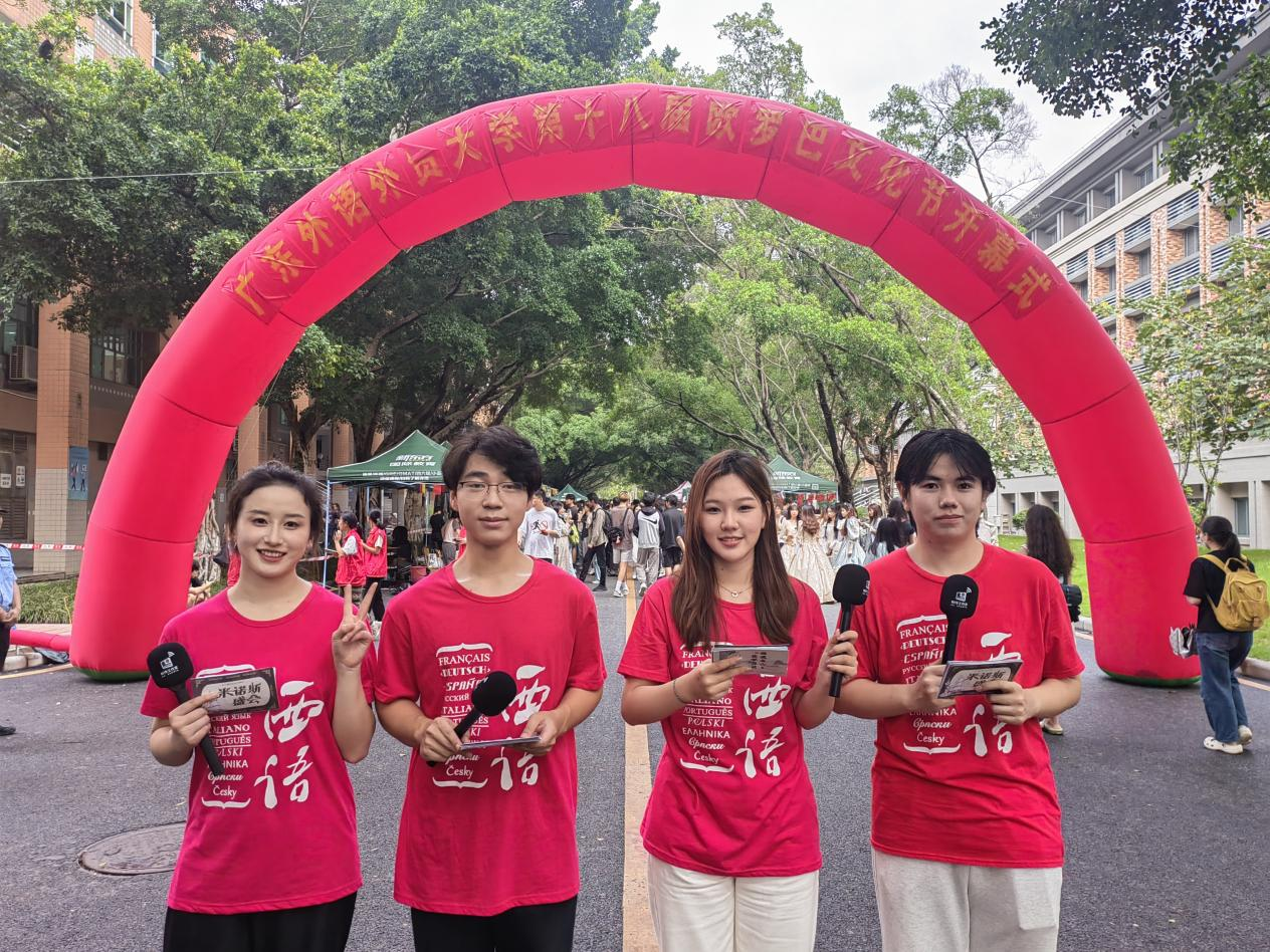 大学党委宣传部、学生工作部、校团委、教务部、国际交流合作部、总务后勤部、西方语言文化学院、留学生教育学院、外国文学文化研究院等相关单位负责人,以及白云外国语中小学的师生代表一起参加了开幕式。