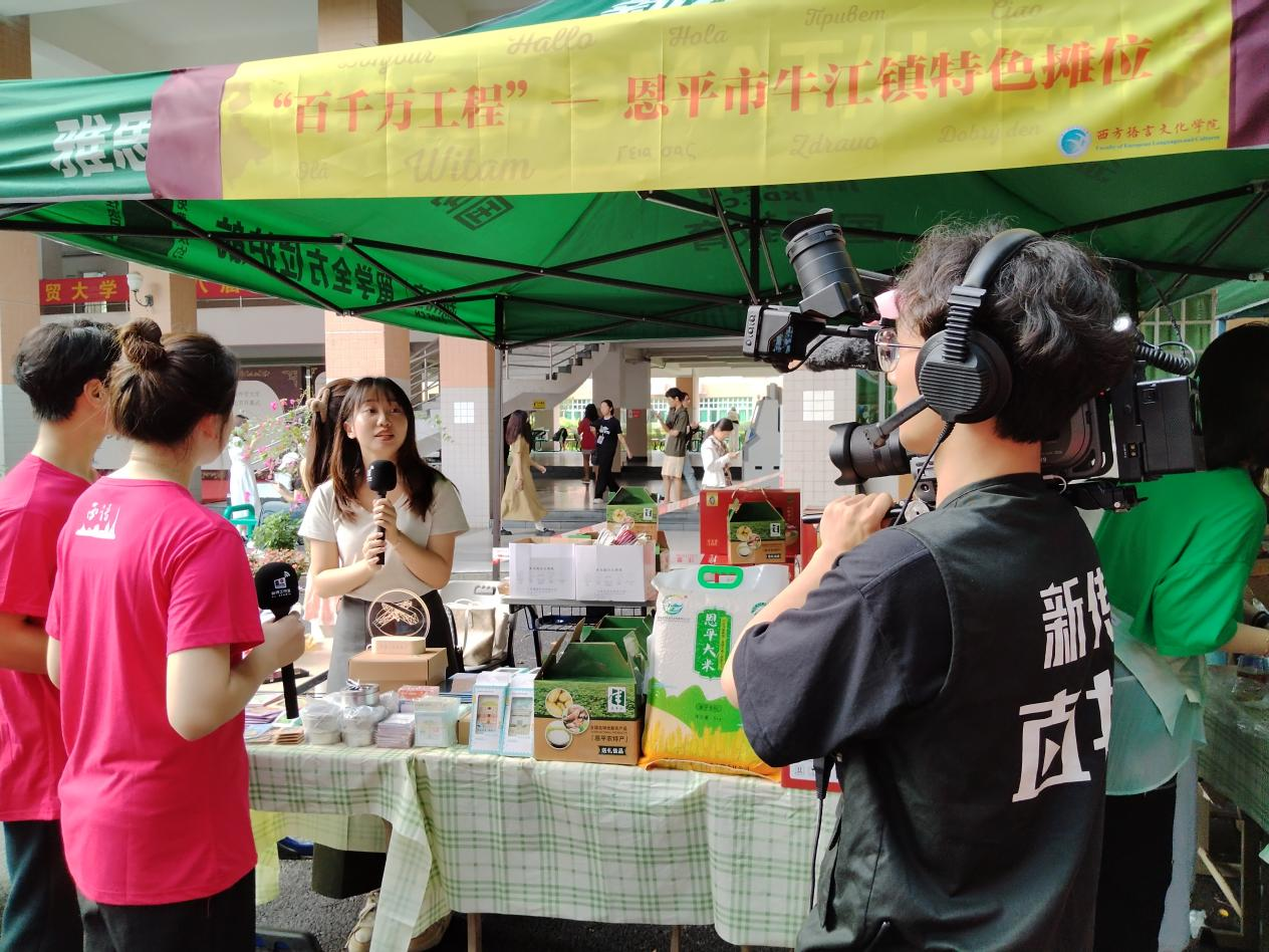今年的欧罗巴文化节迎来了一个特别的摊位,我校“百千万工程”结对单位——江门恩平市牛江镇特色摊位。牛江镇是中国航空之父冯如的故里,也是恩平市著名侨乡。本次文化节活动中他们充分展示了航空文化的重要内涵、宣传了华侨文化的独特魅力,展现了我国乡村建设精神风貌,同时盛情邀请西语学院学子5月份前往牛江镇参加“拉美文化节”。