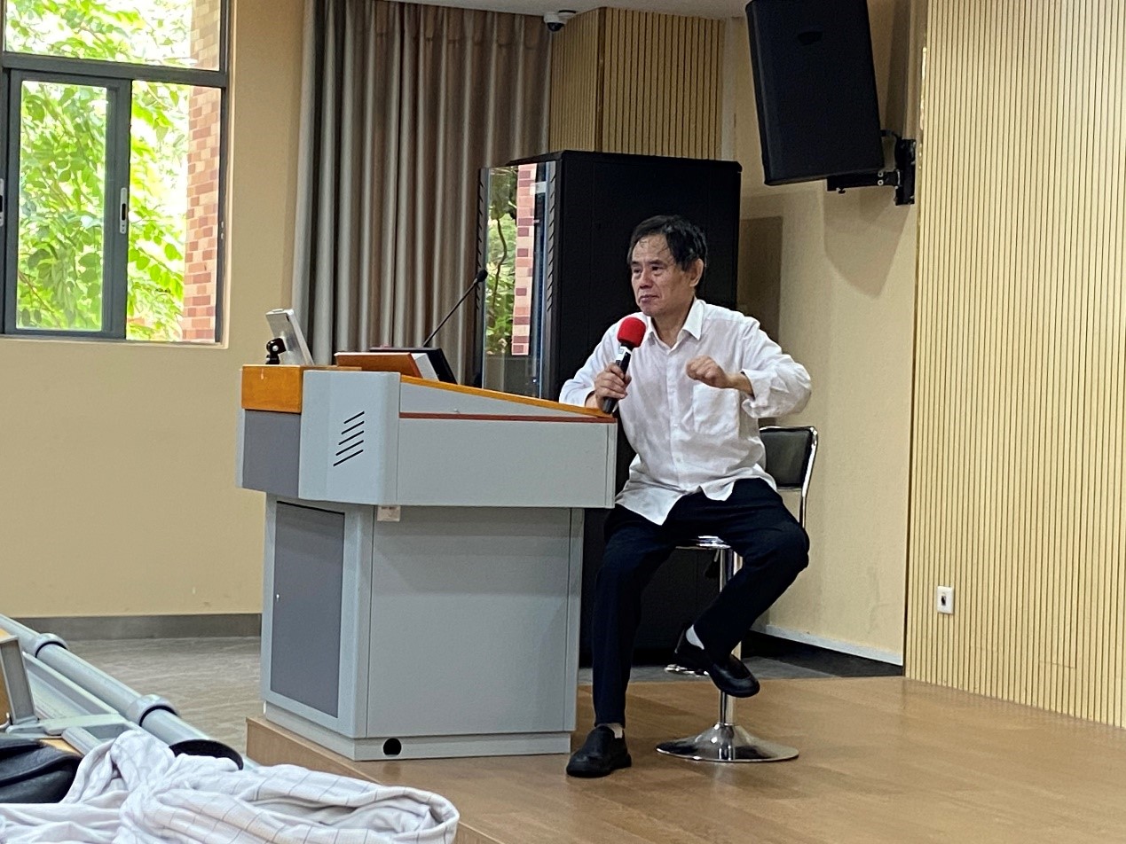 在中法建交60周年之际,杜教授被法国政府评选为15名中国杰出校友之一,并排名第一。讲座伊始,杜青钢教授从自己的法文创作小说《毛主席逝世了》说起,指出做学问如同做人,要扬长避短,鼓励同学们在满足生存的基础需求之上,要努力适应环境,并进而改善环境。面对机器翻译所带来的外语就业危机,杜教授提出,机器或能解决语言翻译问题,但不能解决人与人相处、交往的问题。从文学创作方面来说,很多经历仍需经文学处理变成故事,以达到传递心得经验的目的。