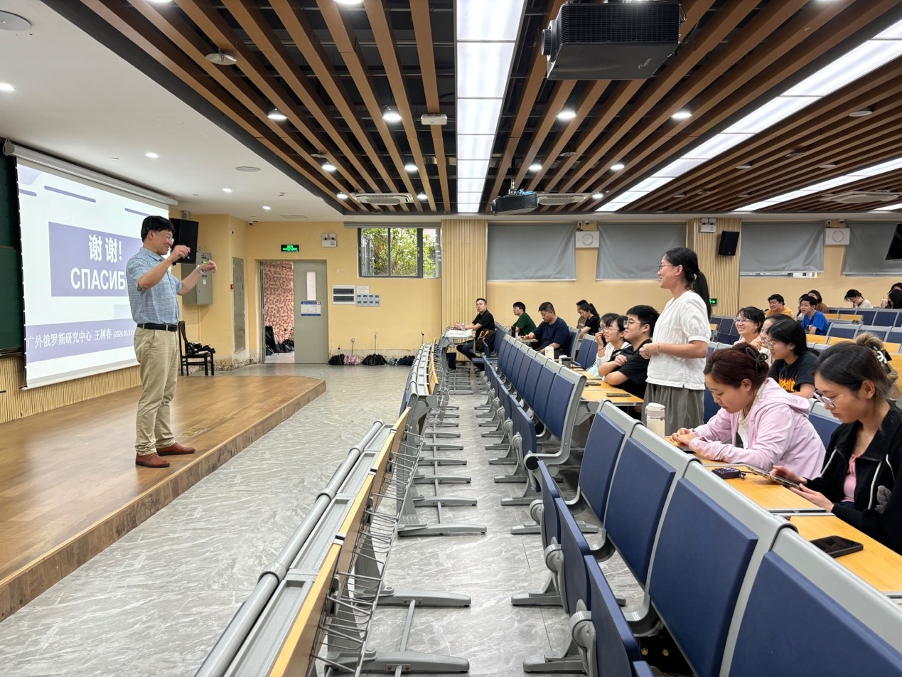 讲座最后,王树春教授与现场的老师和同学们展开了积极互动交流,学生们踊跃提问,教授认真倾听并以丰富的研究经验与大家进行深入探讨,分享自身见解。王教授对俄语专业同学们提出期许,希望未来会有越来越多的有志青年投身到中俄关系研究中,不断注入新鲜血液。本次讲座在热烈的掌声中圆满结束。