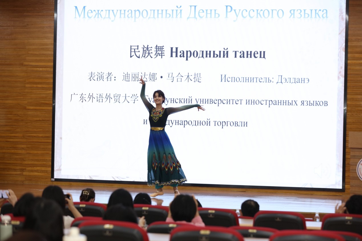 本次“俄语日”由我院俄语系研究生迪丽达娜·马合木提、本科生王一洋主持。来自各院校的中俄学生代表还在赛后带来了精彩的文艺表演:用舞蹈、诗朗诵等节目形式共同庆祝国际俄语日,也为第13届“俄语日”活动画上了圆满的句号。
