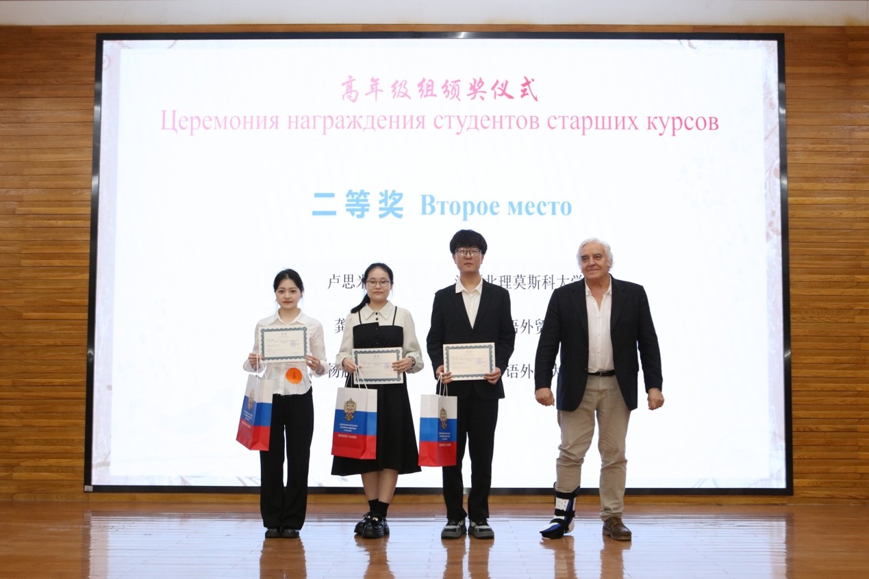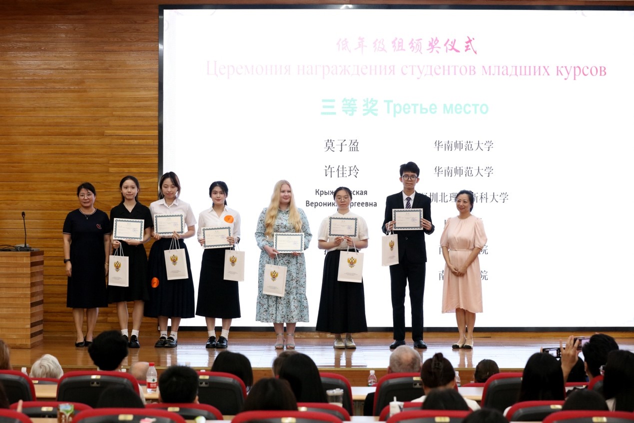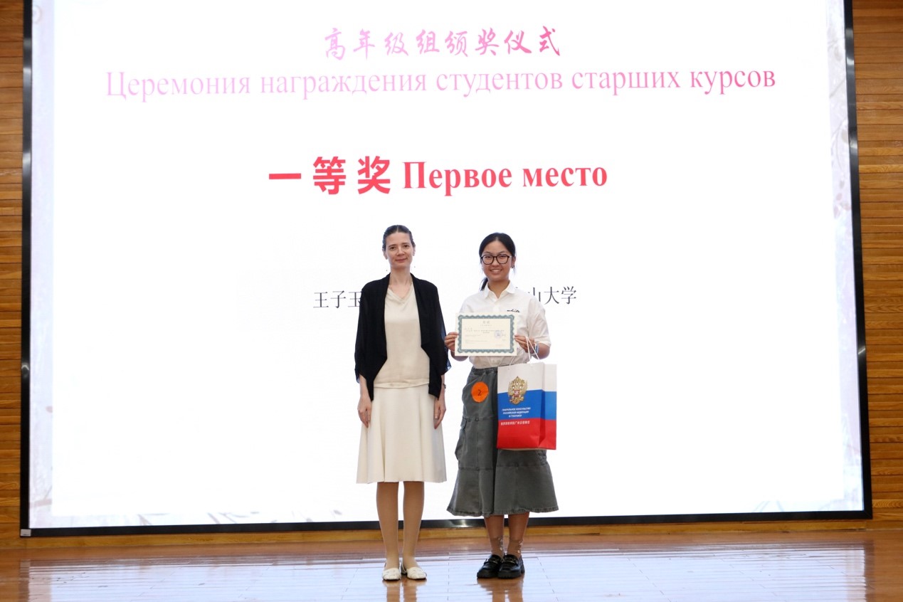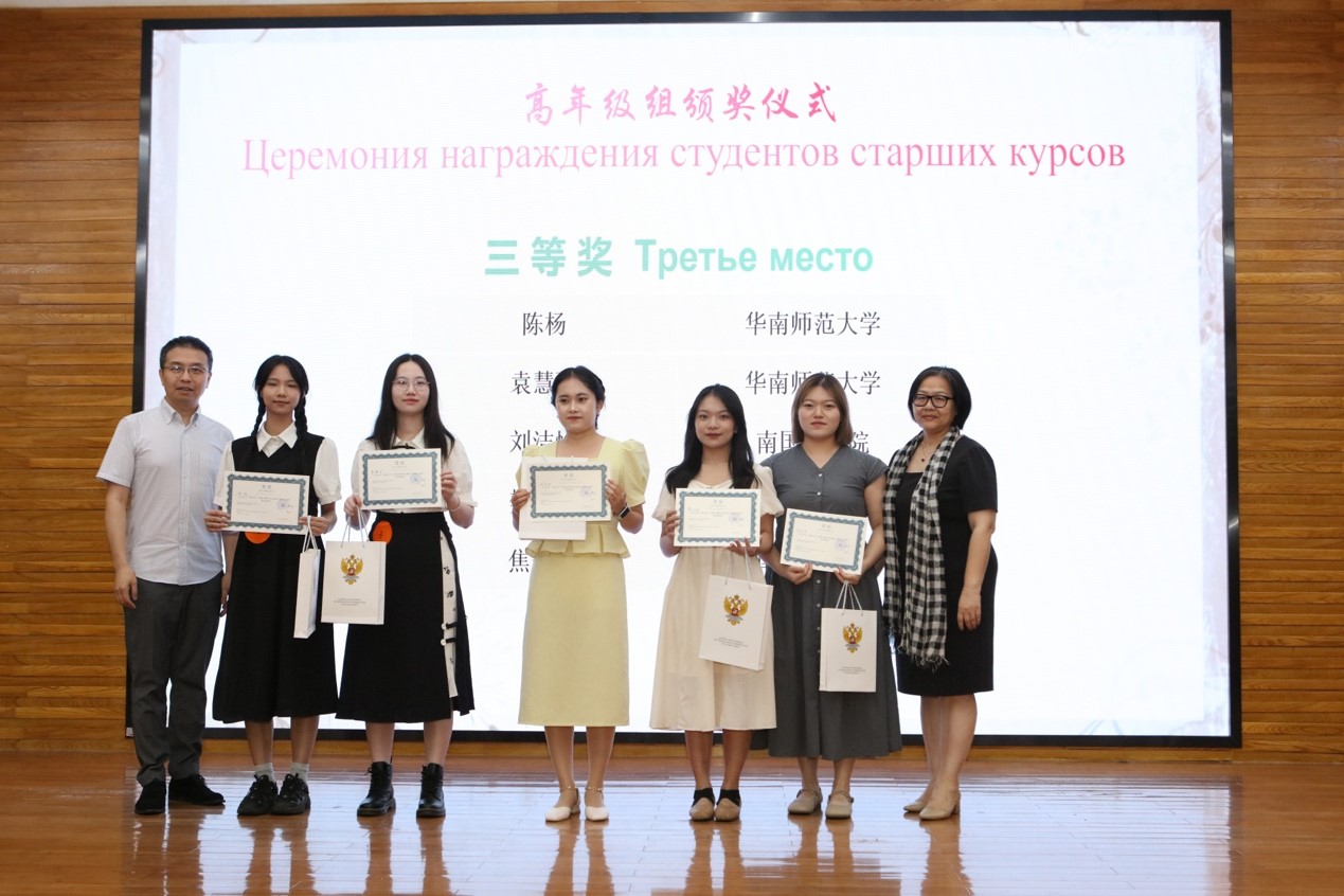 2024年6月6日下午,第13届“俄语日”暨“庆祝中俄建交75周年”俄语演讲比赛在我校白云山校区图书馆报告厅成功举办。本次活动由俄罗斯联邦驻广州总领事馆、广东外语外贸大学西语学院及广东外语外贸大学俄语中心共同主办。出席本次“俄语日”的嘉宾有广东外语外贸大学党委副书记李云明、俄罗斯联邦驻广州总领事馆领事玛丽娜·丘穆丽娜、广东外语外贸大学国际交流与合作部部长周鹏、广东外语外贸大学西方语言文化学院院长杨晓敏、广东外语外贸大学宣传部副部长费俊慧等。活动特邀俄罗斯联邦驻广州总领事馆领事玛丽娜·丘穆丽娜、中国俄罗斯东欧中亚学会俄语教学研究分会秘书长张冰、广东外语外贸大学原俄语中心主任杨可、世界俄语教学研究会原主席团成员及西班牙格拉纳达大学斯拉夫语文系教授拉斐尔·古斯曼、深圳北理莫斯科大学语言系主任亚历山大·列杰涅夫、南京大学外国语学院副院长张俊翔、广东外语外贸大学南国商学院西方语言文化学院院长于凤颖、华南师范大学俄语系主任汪隽担任演讲比赛评委。参加此次活动的还有来自广东外语外贸大学、中山大学、华南师范大学、深圳北理莫斯科大学、广州大学、广东外语外贸大学南国商学院等高校及佛山市顺德区龙江中学的师生代表。