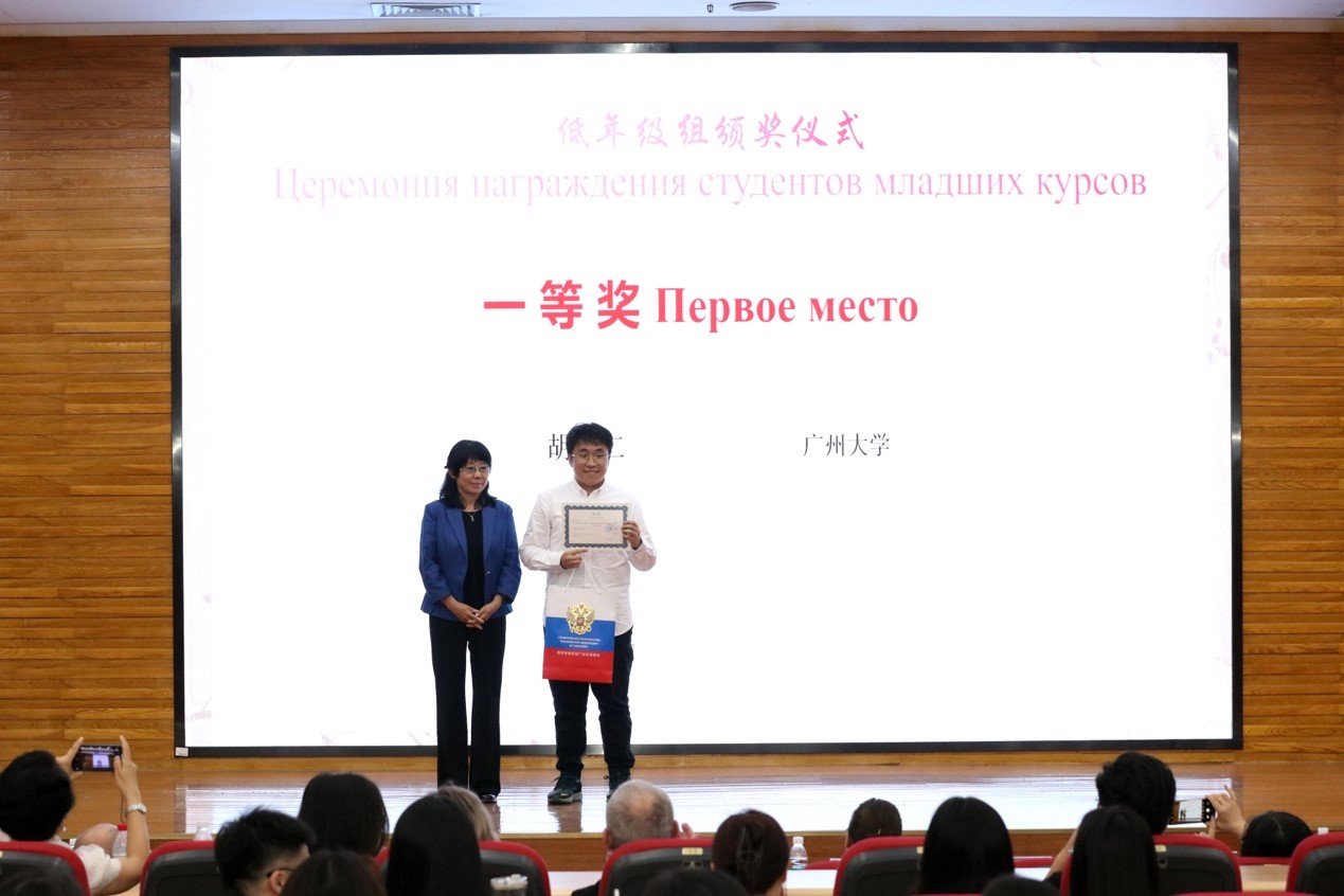 广外俄语中心自2011年成立以来,已成功举办12届“俄语日”和一系列推广俄语和俄罗斯文化的活动,为增进中俄两国青年相互了解搭建了交流平台。今年是中俄建交75周年,是中俄关系发展史上具有里程碑意义的重要年份。本届“俄语日”活动围绕“庆祝中俄建交75周年:青年交流在深化中俄友谊中的作用”这一主题首次举办俄语演讲比赛。来自广东外语外贸大学、中山大学、华南师范大学、深圳北理莫斯科大学、广州大学、广东外语外贸大学南国商学院的19名选手各显其才,以其优秀的文字功底、极佳的表达能力和自身的独特见解生动诠释了中俄青年交流对于深化加强两国友谊的重要意义。经过激烈角逐,来自中山大学的王子玉与广州大学的胡启仁分别获得高年级组和低年级组一等奖。