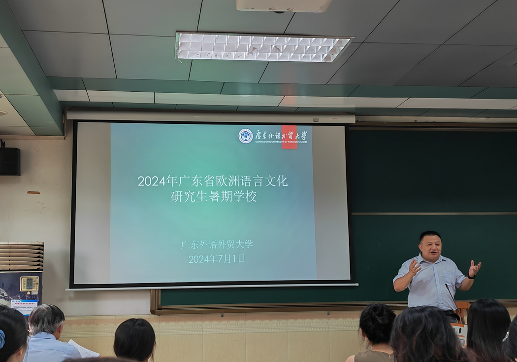 本网讯 为充分利用研究生教育的优质资源,为外国语言文学及其相关学科研究生搭建高水平的学习交流平台,同时促进研究生教育的交流与合作,由广东省学位委员会办公室主办、广东外语外贸大学西方语言文化学院承办的“2024年广东省欧洲语言文化研究生暑期学校”开学典礼于7月1日上午在广外北校区第四教学楼424室顺利举行。广外西语学院领军学者于奇智、西语学院副院长臧宇、西语学院研究生办公室主任刘巍以及来自全国多所高校的约80名研究生和青年教师参加了此次活动。