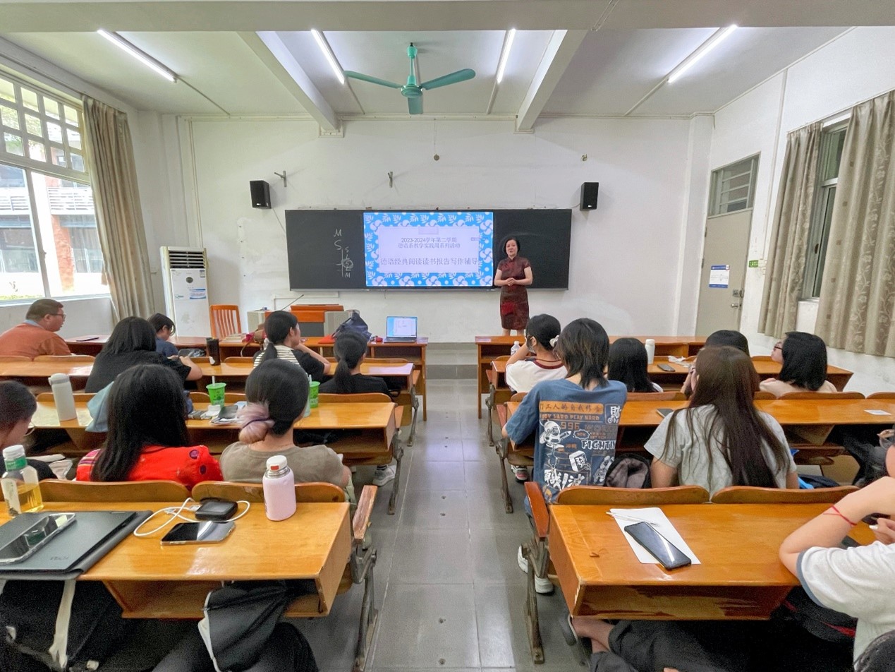 讲座由德语系资深教师滕奕丹老师主持,她以渊博的知识和独到的见解,为学生们揭示了经典阅读的深远意义。滕老师不仅传授了如何高效阅读和深刻理解经典的技巧,更是谆谆教导学生们要始终保持阅读的热情和初衷。