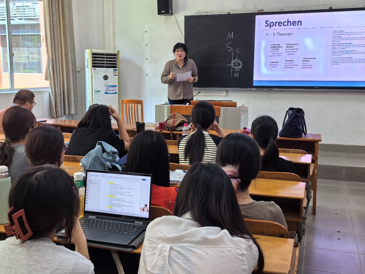本网讯 2024年7月1日,西方语言文化学院德语系在四教115室举办了针对2023级德语期末考试的解析讲座。德语系2023级01班和02班的学生们踊跃参与。