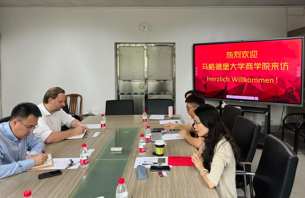 2024年10月23日,德国马格德堡大学商学院负责人Christian Stahr、驻中国代表贺林夫老师和额尔登老师到访我院,与德语系就国际合作展开交流。副院长卢铭君教授、德语系主任吴晓钢副教授、德语系外事工作负责人黄羽欢副教授、德语系主任助理张思源老师共同接待了来访客人。
