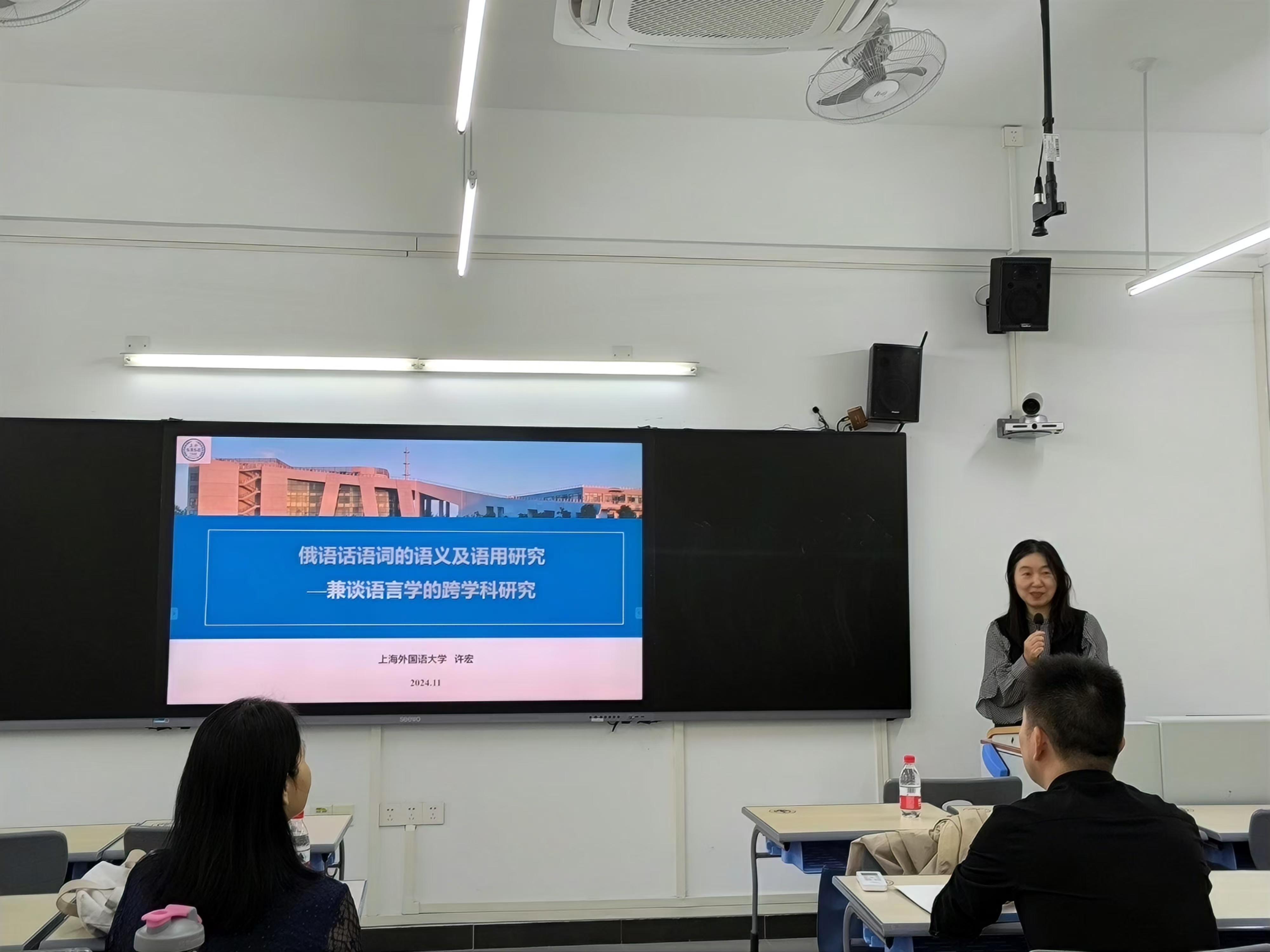 本网讯 2024年11月7日下午14:30,由广东外语外贸大学西方语言文化学院举办的宗岱人文讲坛在广外白云山校区第一教学楼南楼424室顺利举行。本次讲座由上海外国语大学俄罗斯东欧中亚学院院长许宏教授主讲,讲座主题为“话语词的语义及语用研究 - 兼谈语言学的跨学科研究”。