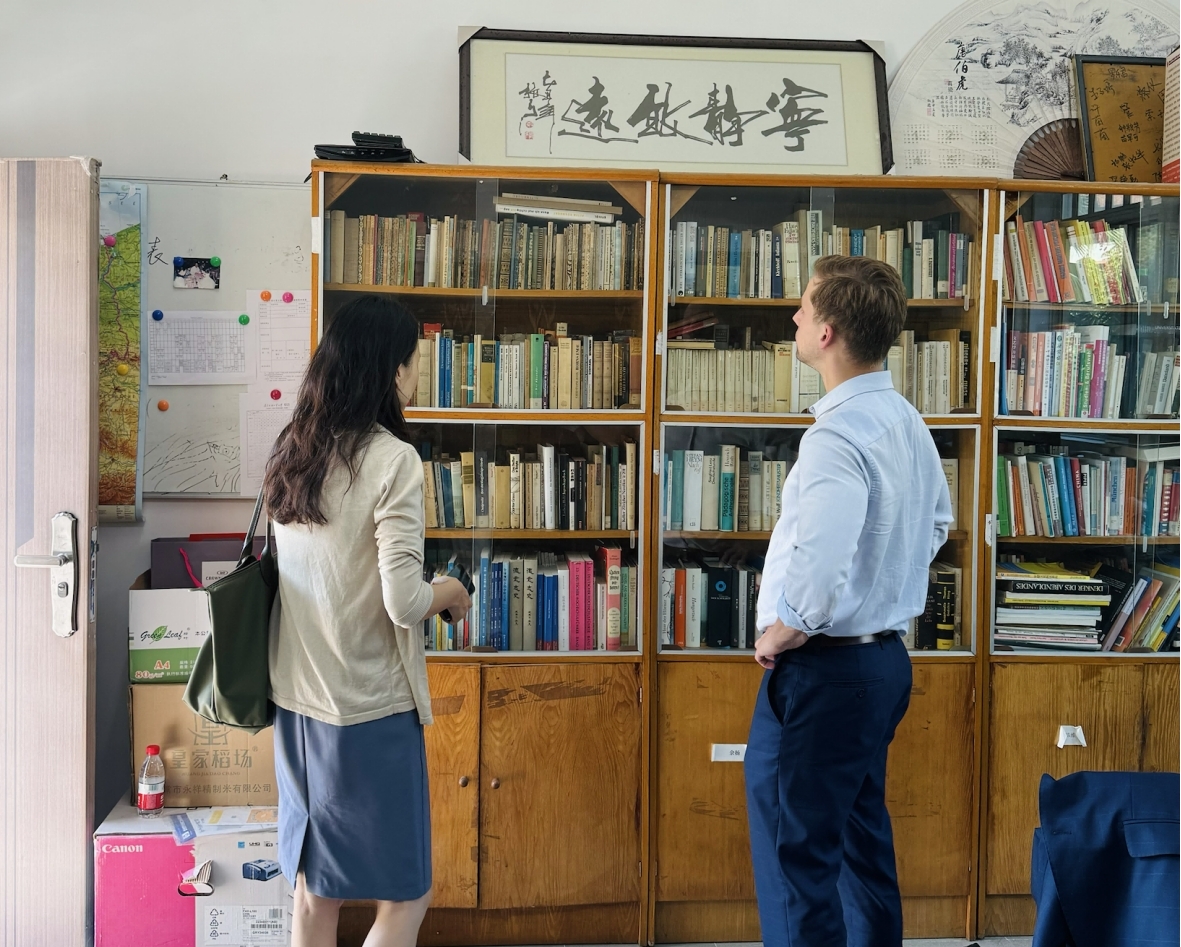 访问伊始,学院副院长卢铭君教授代表学院诚挚欢迎来访客人,同时对DAAD长期以来对德语系办学的支持表达由衷感谢。她表示,DAAD在促进中德学术交流、文化传播和科研合作中具有重要影响力,广外作为首批接受驻校语言专家的高校,已与DAAD有46年的成功合作经验,未来希望双方能够通过更多形式的交流活动,共同推动德语教育与国际合作迈向新高度。卢教授随后还陪同来宾参观了德语系办公室,深入介绍西语学院与德语系办学特色,并向客人赠送了校级“中德文学关系”科研创新团队成果《青龙过眼——中德文学关系中的“读”与“误读”》和《德语系学生戏剧手册》,同时诚挚邀请欧阳乐先生和李文爱女士参加广外60周年校庆,共襄盛举。