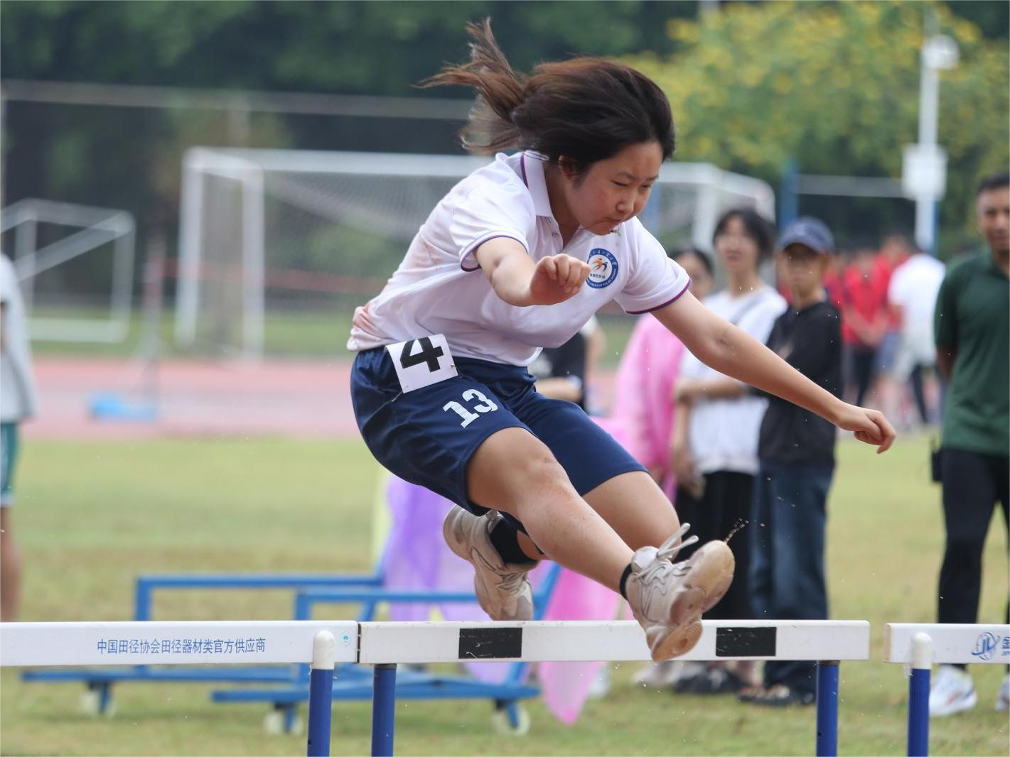 15日上午9:00,女子100米栏拉开了校运会的序幕。邱静怡同学身手矫健,跨过一道道阻碍,直奔终点,取得了优秀的成绩。