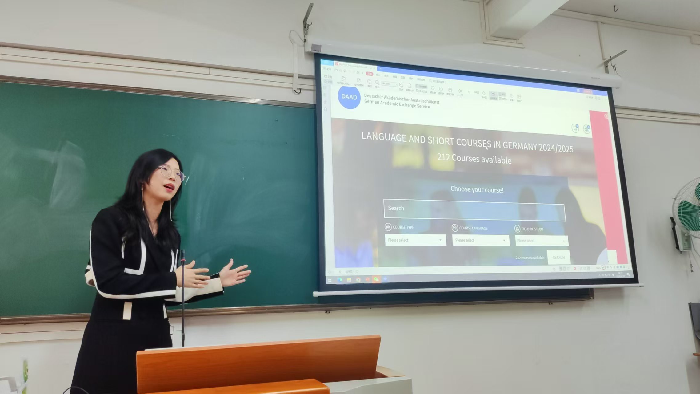 为帮助我校学生了解赴德留学与研究的最新资讯,广东外语外贸大学西方语言文化学院与广东外语外贸大学研究生院特邀德国学术交流中心(DAAD)广州代表处,携德国科隆大学与拜罗伊特大学举办留学德国主题宣讲会。本次宣讲会吸引到全校60余名学生到场聆听,由DAAD广州代表处李文爱老师、拜罗伊特大学上海代表处陈怿雯老师与科隆大学北京代表处邱岚老师主讲,德语系主任吴晓钢老师主持。