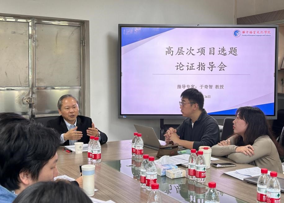 本网讯 为做好2024年高层次项目申报工作,提高申报质量,11月26日下午,西语学院在白云山校区第四教学楼207室召开2024年高层次项目选题论证指导会,广东外语外贸大学云山领军学者于奇智教授应邀为西语学院教师开展高层次项目选题论证指导会。会议由卢铭君副院长主持。