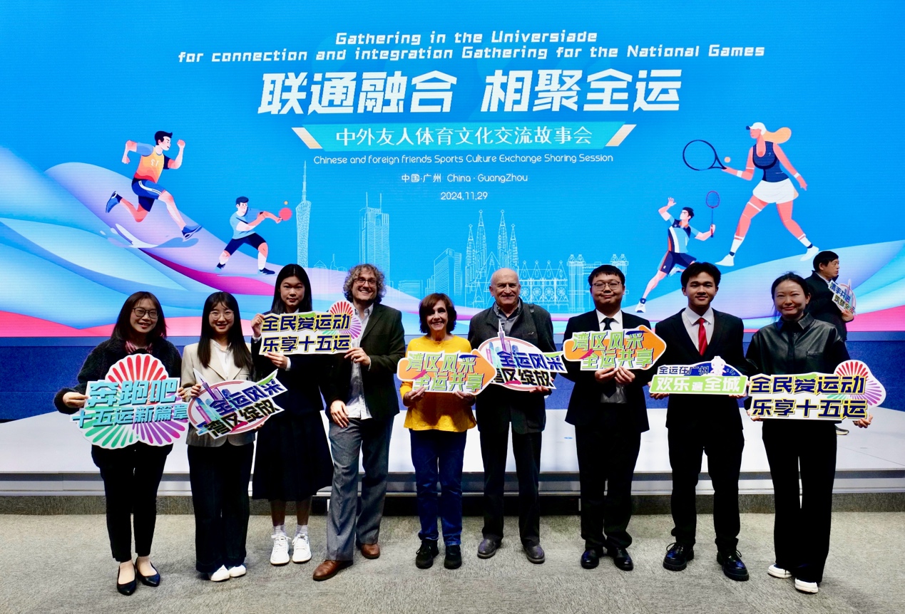 本网讯 2024年11月29日,由十五运会和残特奥会广州赛区执委会主办的“联通融合 相聚全运——中外友人体育文化交流故事会”在广州智慧城市运行中心多功能厅举行。此次活动汇聚了来自中国、西班牙及阿根廷文学界、经济学界和体育界多名代表,共同分享他们的经验与见解。广东外语外贸大学西方语言文化学院西班牙语系师生受邀为这一盛会提供翻译服务,并献上中西文诗歌朗诵,展现文化与体育的交融。