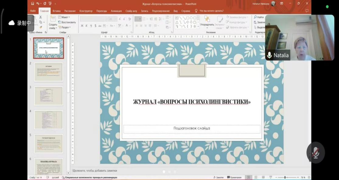 本网讯 2024年11月18日-30日,2024年广东外语外贸大学海外名师项目《俄罗斯心理语言学视域下的语言意识研究》线上系列讲座在我院顺利举办,反响热烈。俄罗斯莫斯科国立大学乌菲姆采娃·娜塔莉娅·弗拉基米罗芙娜(Уфимцева Наталья Владимировна)教授受邀为俄语系师生做了七场生动有趣的讲座,带领大家深入了解了俄罗斯心理语言学的历史及发展、俄罗斯心理语言学各大学派的研究、俄罗斯心理语言学研究焦点——语言意识及其研究方法、以及俄罗斯心理语言学领域的最新研究内容。此外,还分享了论文的写作方法、《心理语言学问题》核心期刊的选题和投稿要求、以及如何申请莫斯科大学的博士等重要内容。