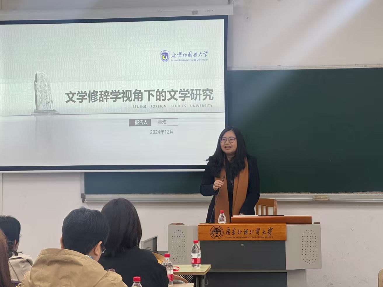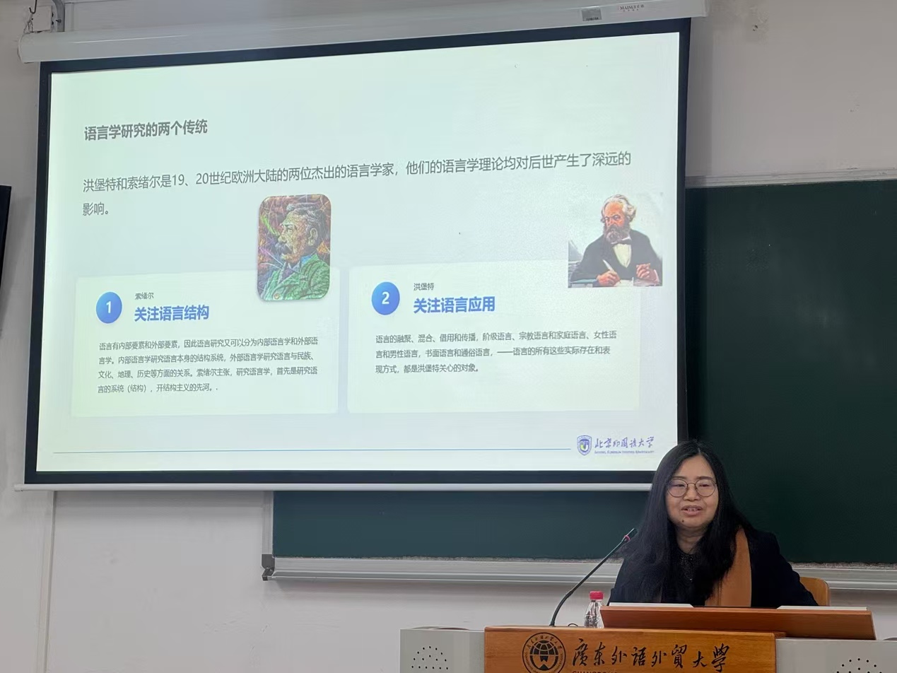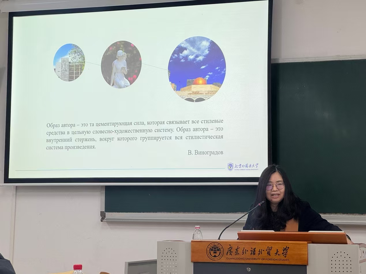 本网讯 2024年12月20日上午10:00,北京外国语大学俄语学院党总支书记、博士生导师、2024俄罗斯普希金奖章获得者、教育部外国语言文学类专业教学指导委员会委员、俄语专业教学指导委员会副主任委员黄玫教授在白云山校区六教B202教室为俄语系师生带来宗岱人文讲坛“文学修辞学视角下的文学研究”。 本次讲座由俄语系系主任陈欢副教授主持,师生积极参与互动,现场氛围活跃。