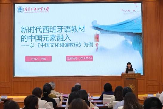 广东外语外贸大学何嫣副教授作了一场题为“新时代西班牙语教学的中国元素融入——以《中国文化阅读教程》为例”的报告。她介绍了教材的编写背景、结构设计与教学实践,强调在“教师主导、学生主体”理念的基础上,通过真实任务驱动教学,激发学生内在潜能。该教材融合“理解世界,讲述中国”的理念,模块设计清晰,内容从多个维度展现中国文化,有效提升了学生的语言运用与跨文化传播能力。