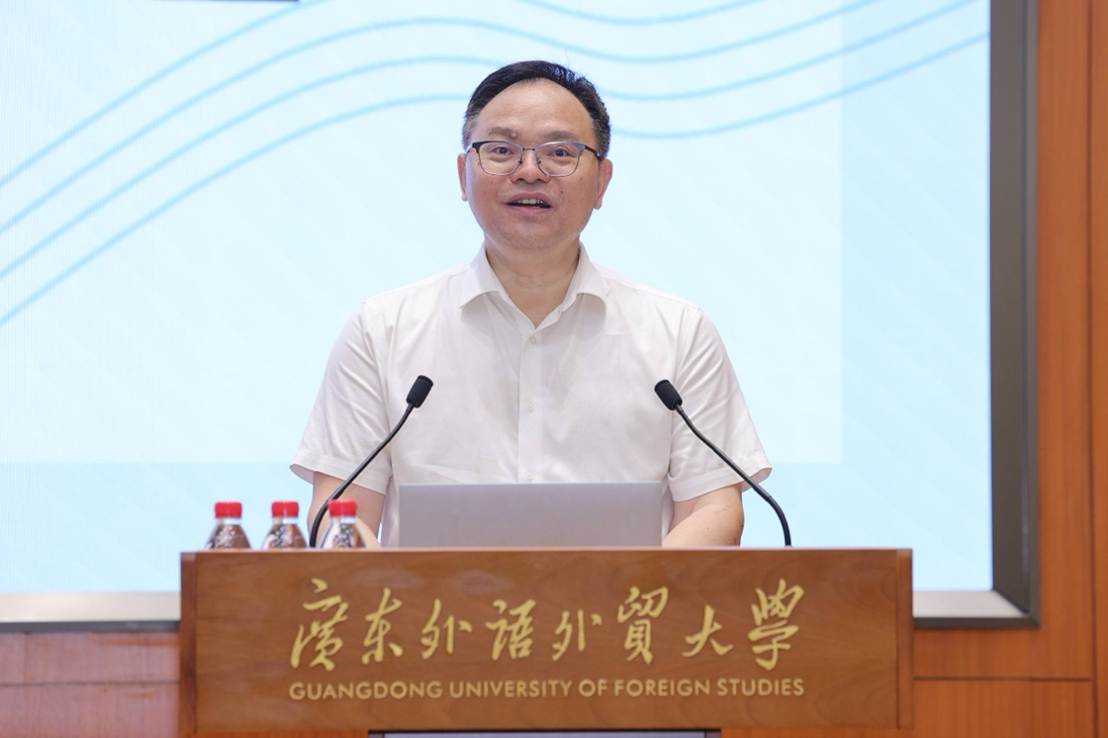在广东外语外贸大学国际报告厅,论坛隆重开幕。广东外语外贸大学副校长刘建达教授首先致欢迎辞,对来自全国各地的专家学者表示热烈欢迎。他介绍了学校在“复语”培养、“小语种+”融合等方面的办学特色,强调广外致力于推动多语种协同发展与复合型人才培养。刘建达教授期待此次论坛为西班牙语教育注入新活力,进一步推动全国高校西语专业的交流与合作。