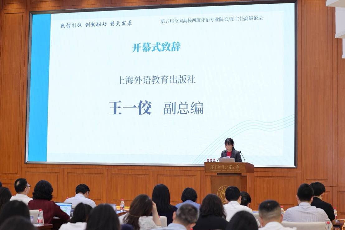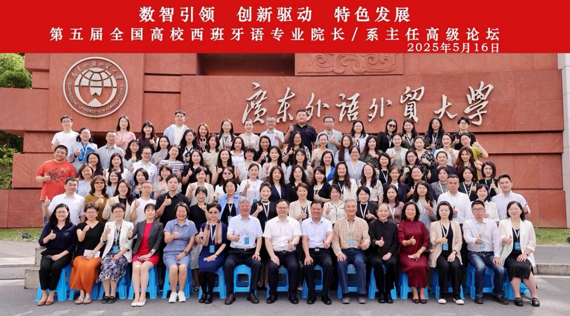 2025年5月16日,由教育部高等学校外国语言文学类专业教学指导委员会西班牙语分委员会、上海外国语大学、广东外语外贸大学联合主办,上海外语教育出版社承办的“第五届全国高校西班牙语专业院长/系主任高级论坛”在广东外语外贸大学成功举行。来自全国近百所高校的西班牙语专业负责人齐聚一堂,围绕“数智引领、创新驱动、特色发展”的主题,深入探讨新时代背景下西班牙语专业建设的新路径与新机遇。