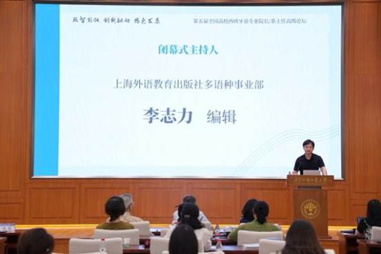 闭幕式在广东外语外贸大学西语学院副院长陈星教授和外教社多语种事业部李志力编辑的主持下拉开帷幕。各分论坛主持人对本场研讨进行总结发言,充分肯定了此次论坛在提升专业建设水平、促进校际交流合作等方面的重要意义。