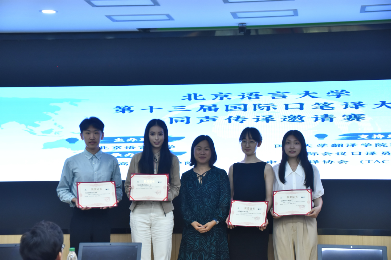 本网讯 2025年5月23日至25日第十三届国际口笔译大赛同声传译邀请赛在北京语言大学举行。我院法语系2024级法语口译研究生矫好、余雅婷在法语系陈湘蓉老师的带领下代表广东外语外贸大学参赛,荣获同声传译邀请赛(法汉互译)团体二等奖。矫好同学还荣获同声传译(法汉互译)个人二等奖。